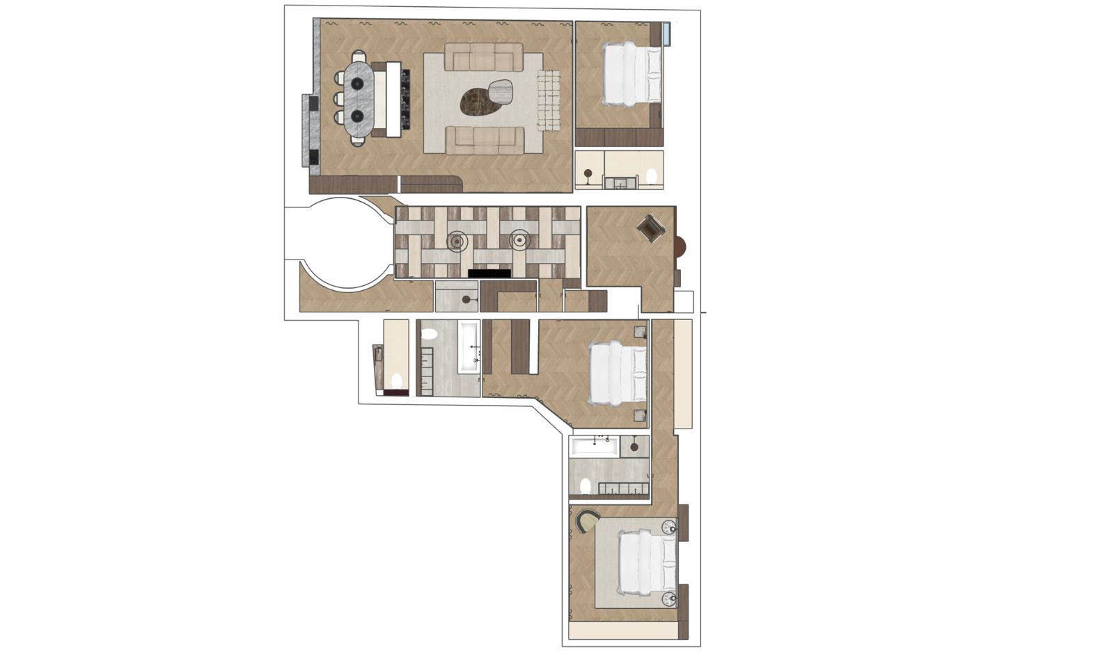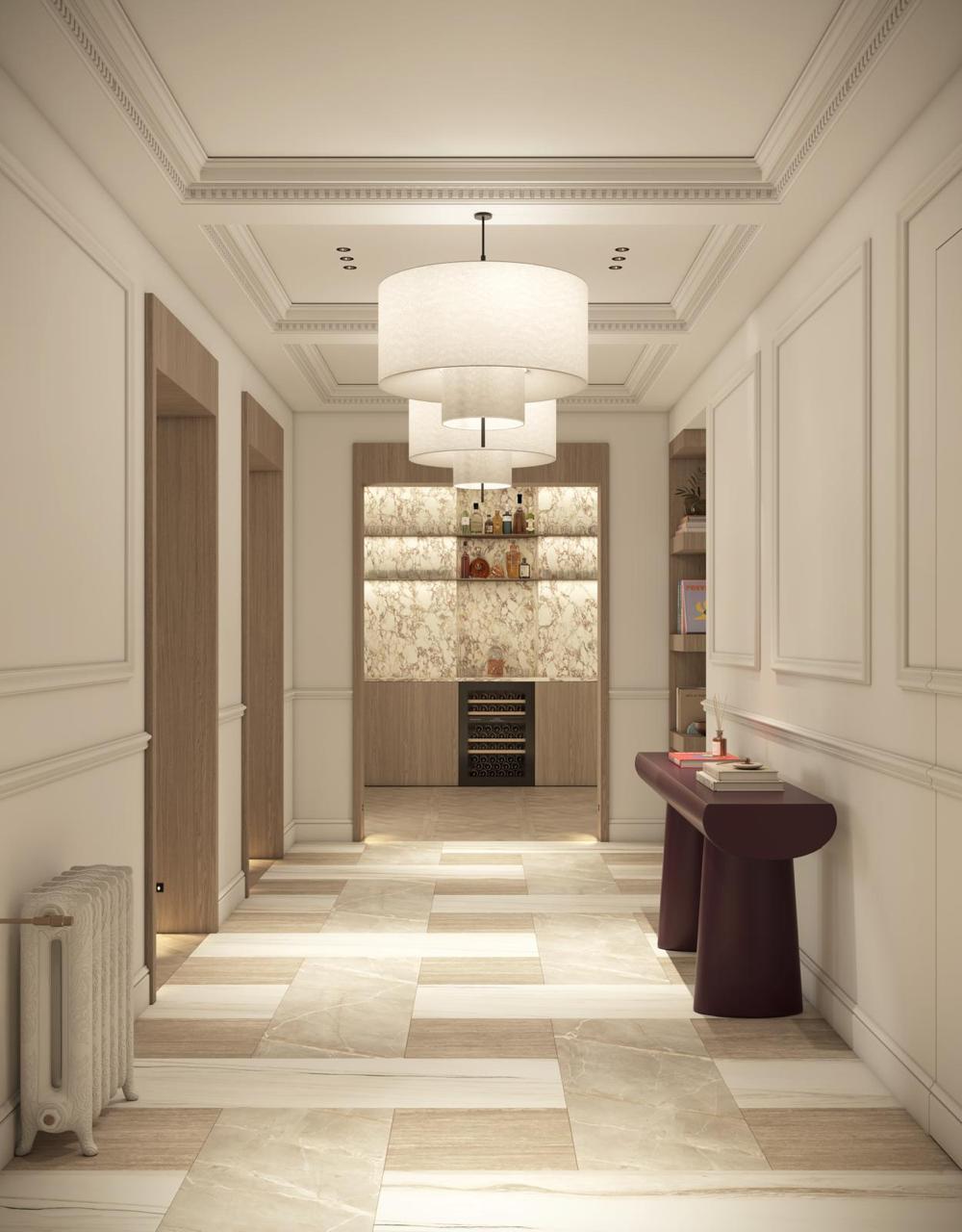Occupant l’étage noble d’un immeuble élégant et sécurisé avec ascenseur, l’appartement a été entièrement repensé par un architecte de renom, mariant des matériaux nobles à un raffinement contemporain.